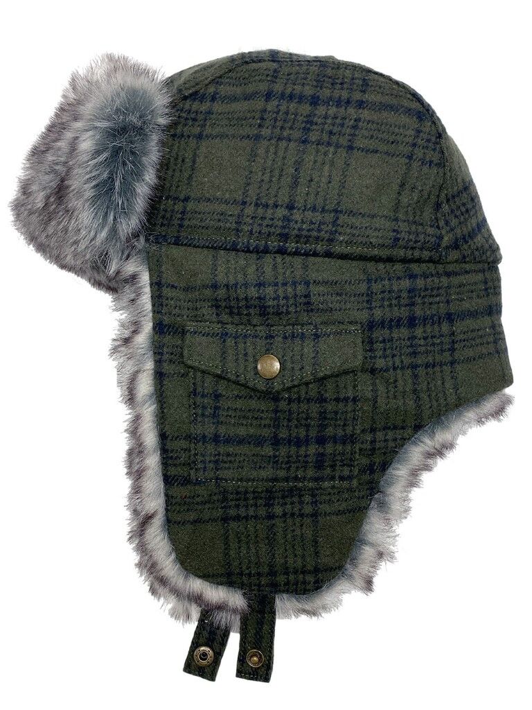 - Quilted fleece lining and plush faux fur earflaps