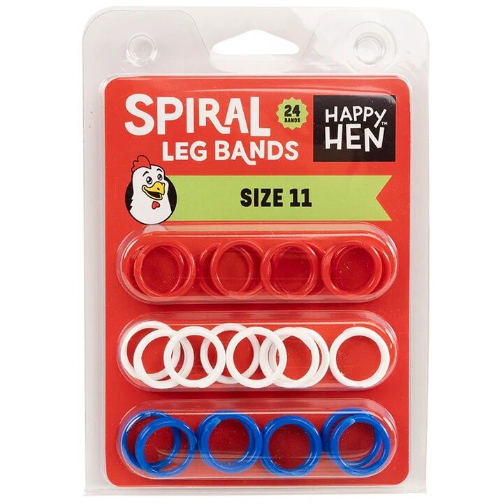 Happy Hen Red/White/Blue Spiral Leg Bands, Size 11, 24-Pk