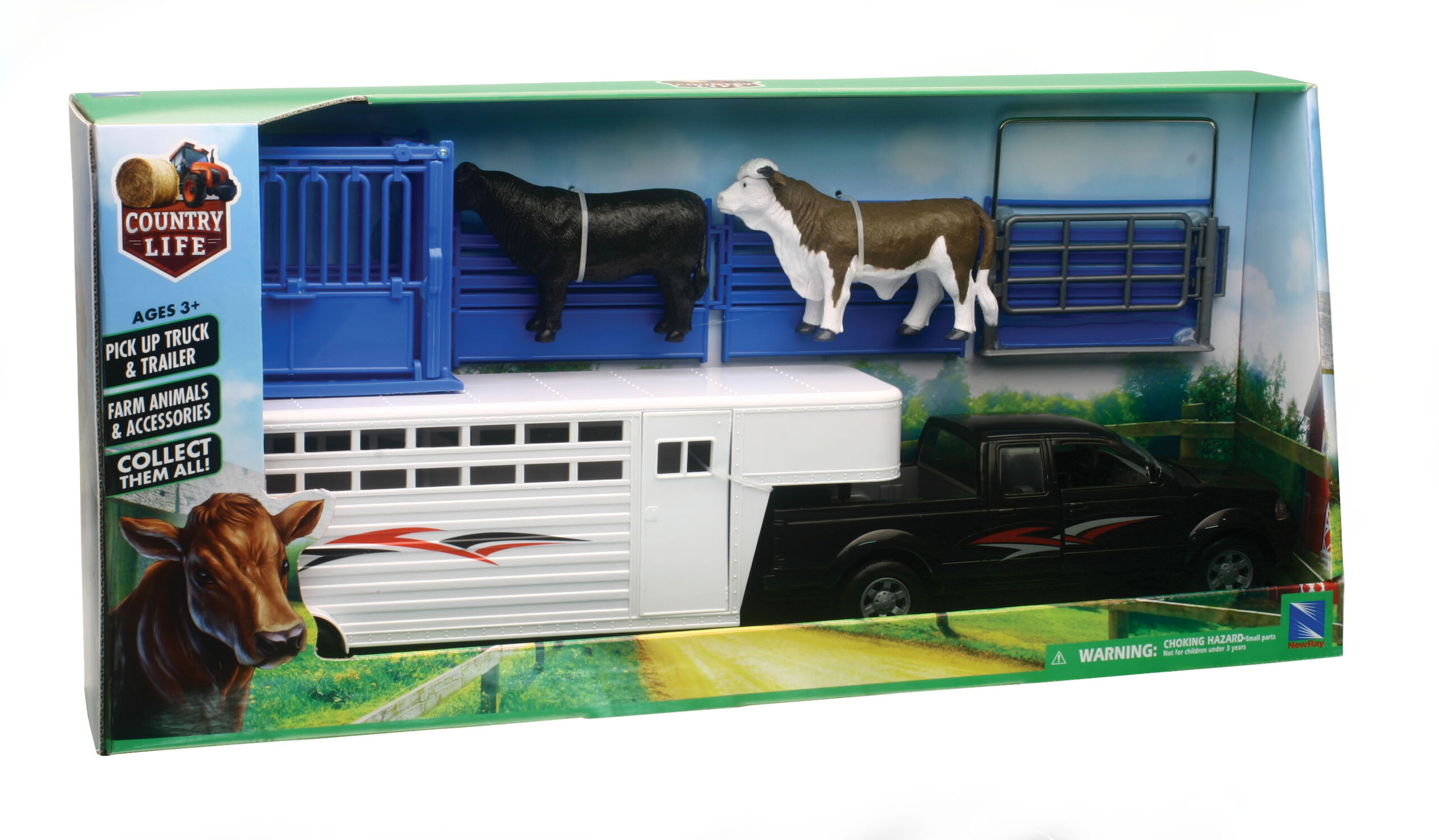 - 1:18 Scale pick-up truck with cattle hauling trailer