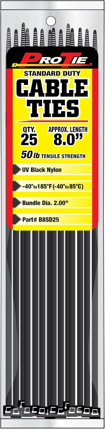 Pro Tie Black Standard Duty 50-Lb Tensile Strength 8-In Cable Ties, 25-Pk