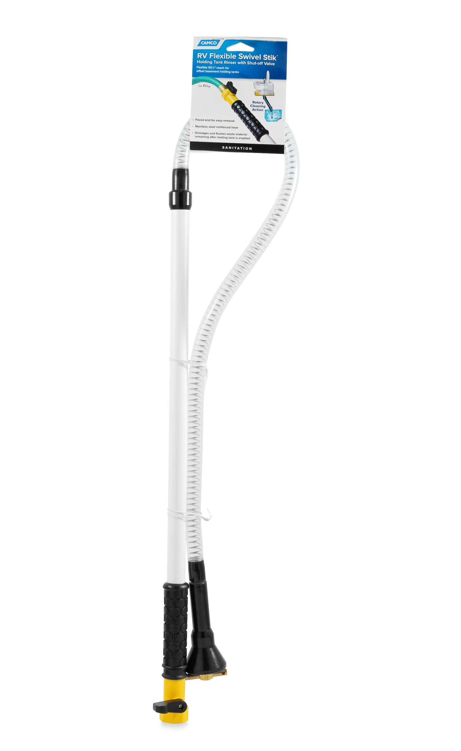 - Powerful rotary cleaning action dislodges and flushes the stubborn waste deposits and odor-causing particles left after holding tank is emptied