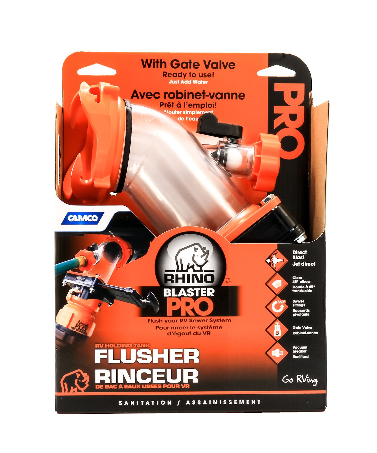 • Direct jet allows water stream to rinse and flush RV sewer systems