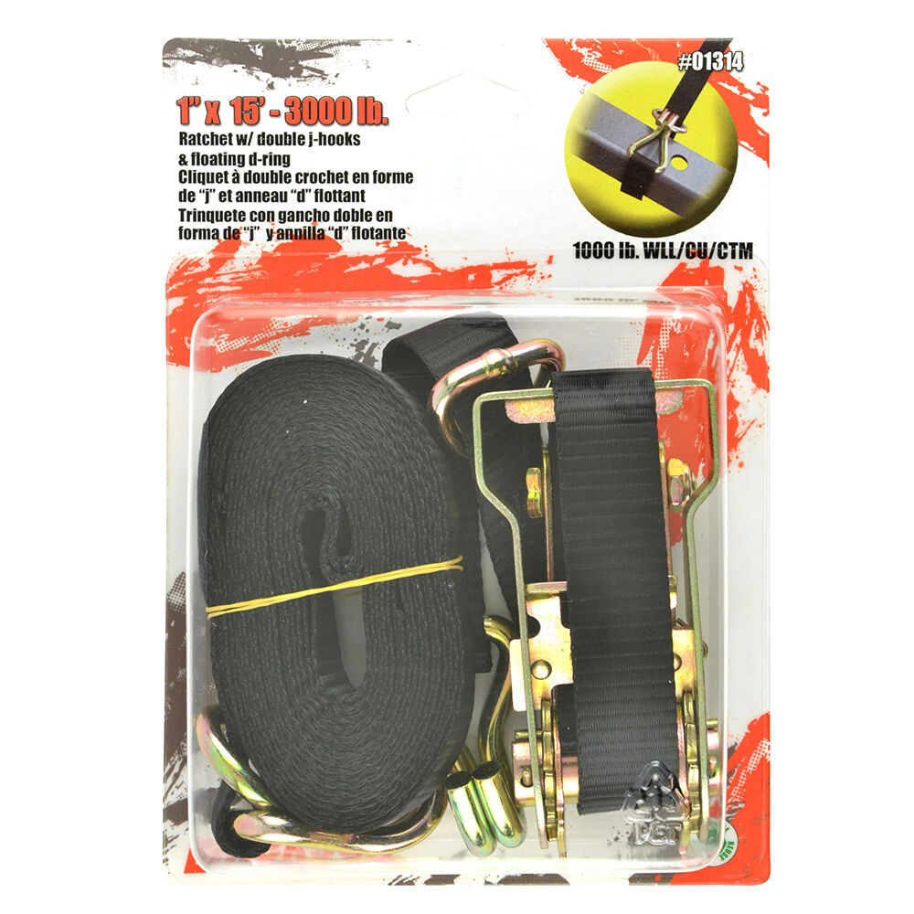 1′ X 15′ - 3000 Lb. Ratchet W/Double J-Hooks Floating D-Ring
