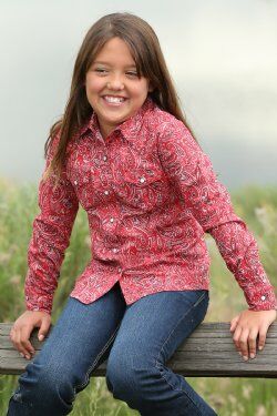 Girls Red Paisley Print Western Snap Shirt