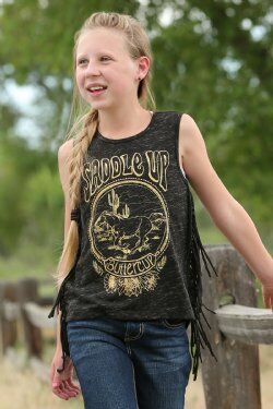 Girls Saddle Up Buttercup Side-Fringe Tank