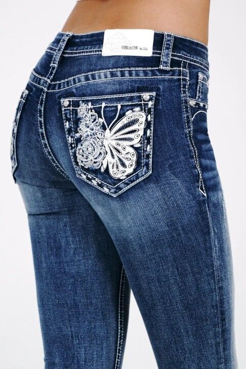 - Stunning butterfly embroidery on back pockets