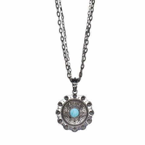 - Rolo Chain And Flat Etched Oval Chain With Round Concho