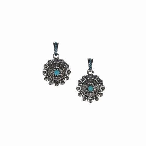 - Drop Dangle With Round Concho And Turquoise Colored Stone In Center