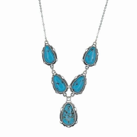 Justin Women's Faux Turquoise Teardrop Stone Lariat Necklace