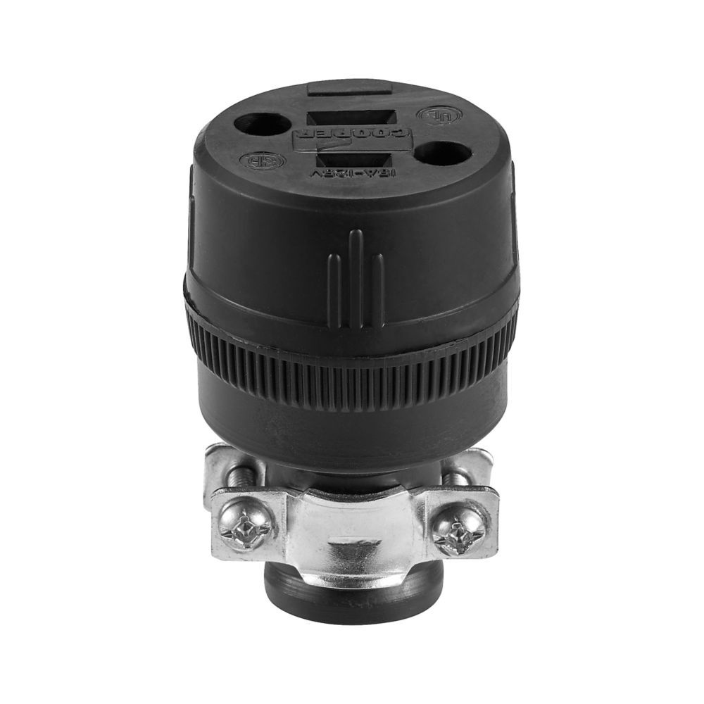 Eaton Black Rubber NEMA 1-15R Commercial Straight Blade Connector, 18-10 Gauge, 15-A, 125-V
