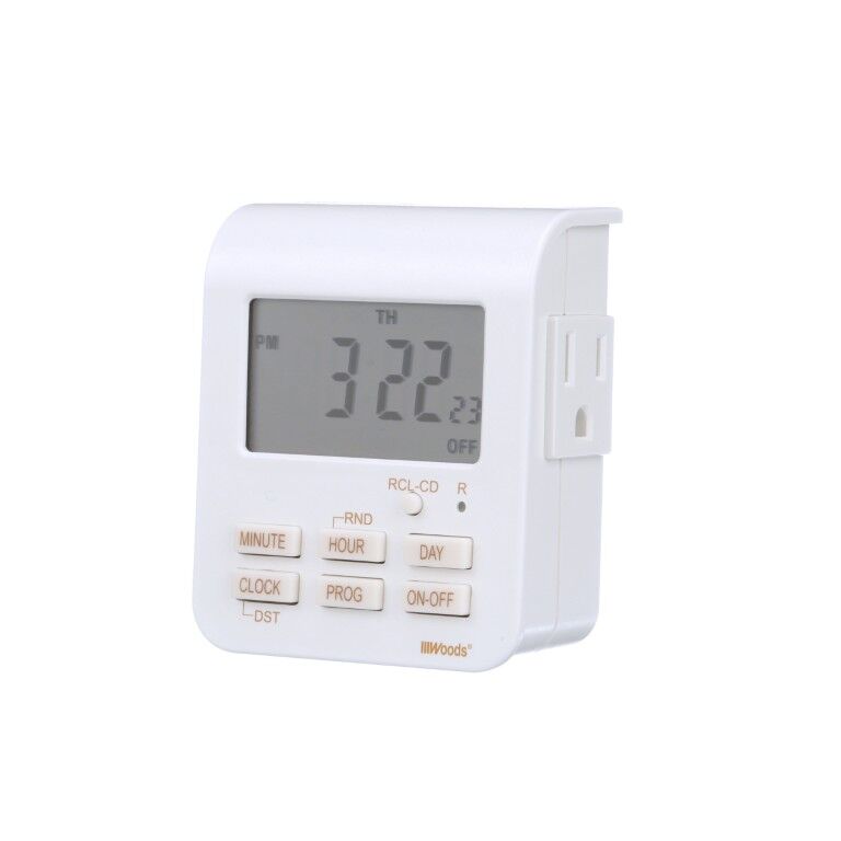 - 2 Grounded Outlets, 20 ON/OFF settings, repeats weekly