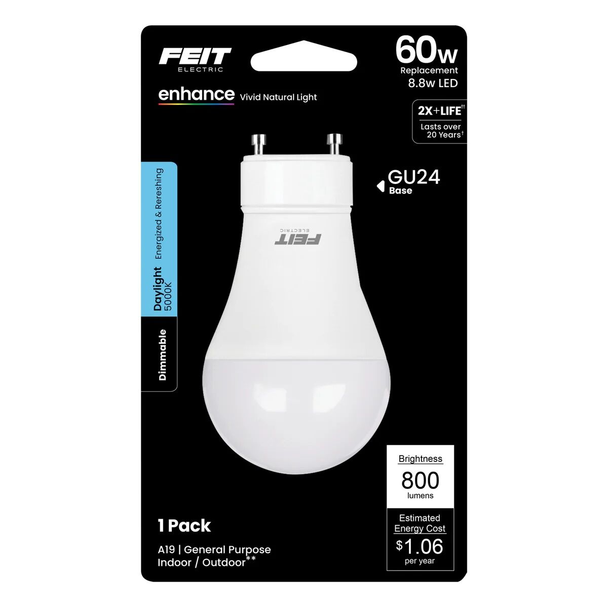Feit Electric A19 8.8 Watt Frosted Daylight Dimmable GU25 LED Light Bulb