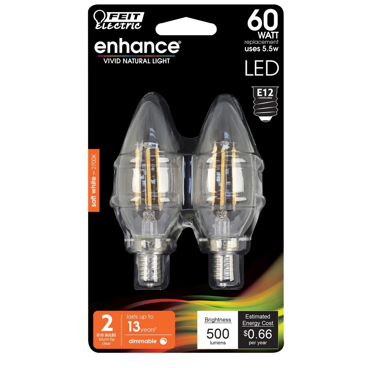 Feit Electric B10 5.5 Watt Soft White Dimmable E12 LED Light Bulb, 2-Pk