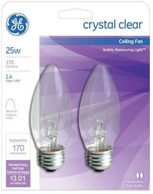 GE Lighting 22756 25 Watt Crystal Clear Blunt Tip Light Bulb