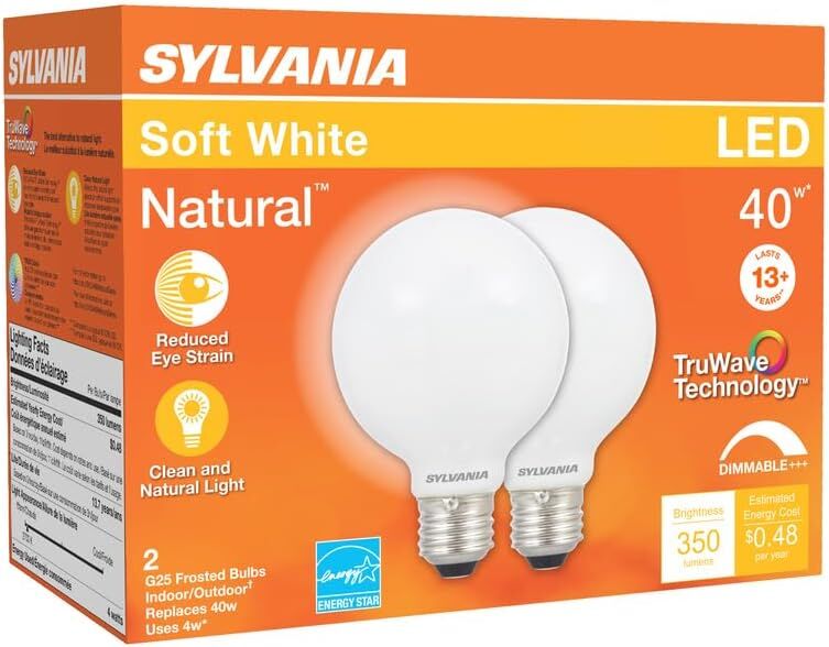 Sylvania G25 4.5 Watt Frosted Soft White Dimmable LED Light Bulb, 2-Pk