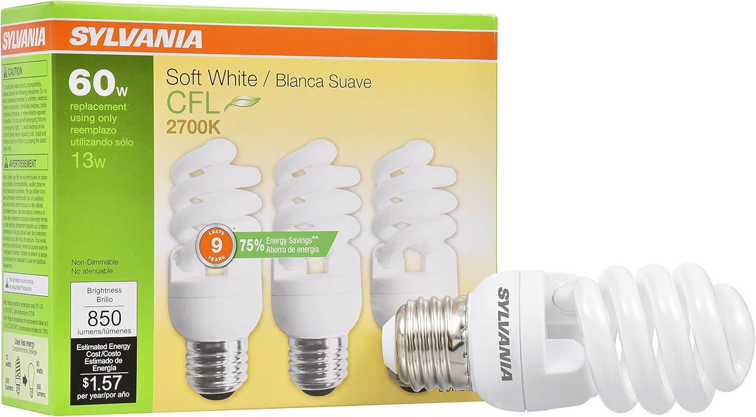 Sylvania T2 12 Watt Frosted Soft White CFL Twist Light Bulb, 3-Pk