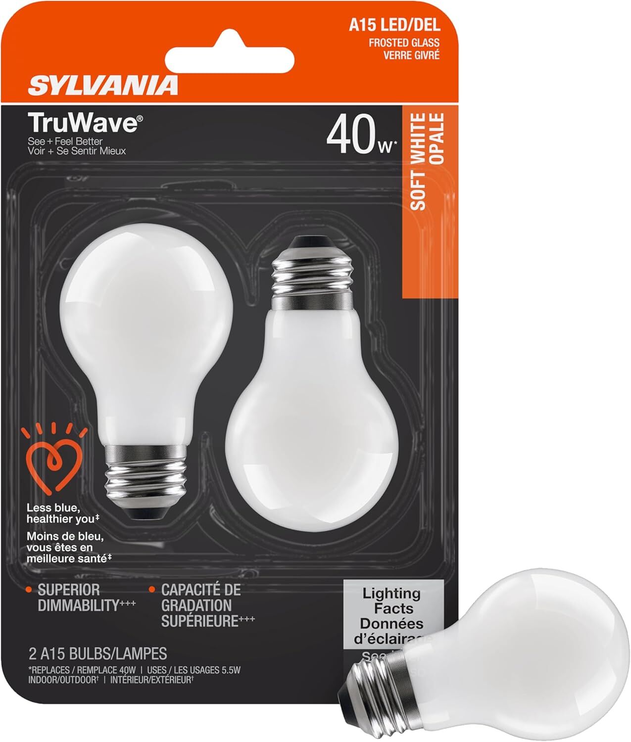 Sylvania TruWave A15 5.5 Watt Frosted Soft White Dimmable E26 LED Light Bulb, 2-Pk