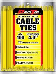 4-In Ultra Light Duty Cable Ties in Yellow, 100-Ct