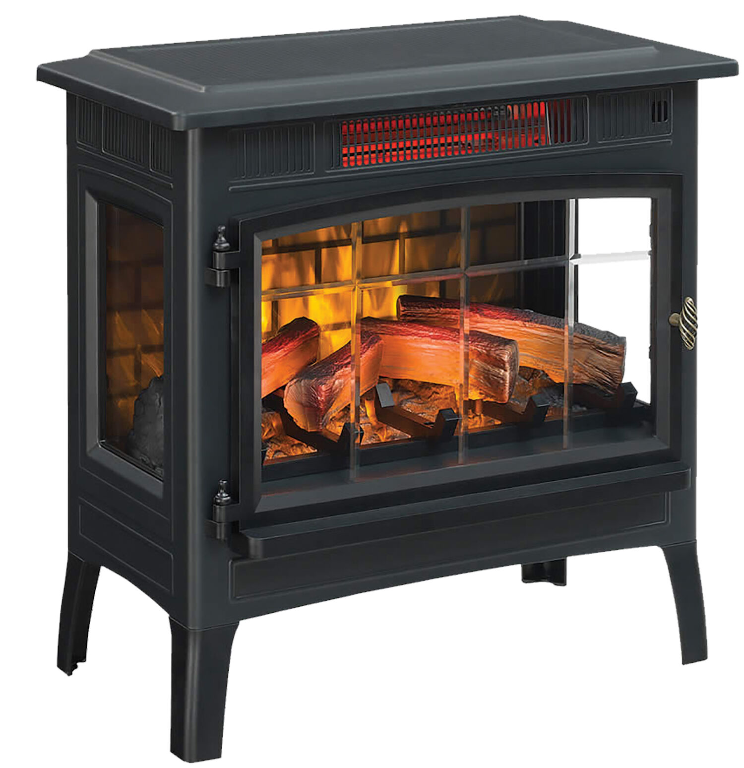 - Realistic flame effect with glowing log and ember bed can be operated with or without heat, providing the ambiance of a gentle rolling fire all year long