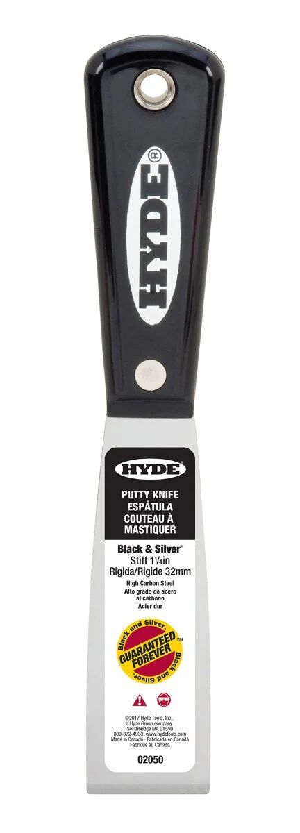 Hyde Black & Silver Carbon Steel Stiff Putty Knife Scraper, 1 1/4-In