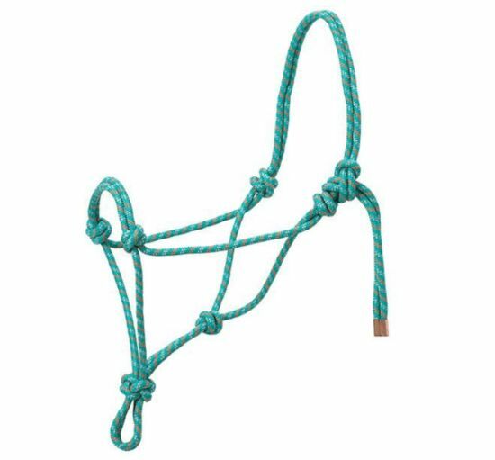 Weaver Leather Diamond Braid Rope Halter - Teal/Gray/Orange, Medium Horse