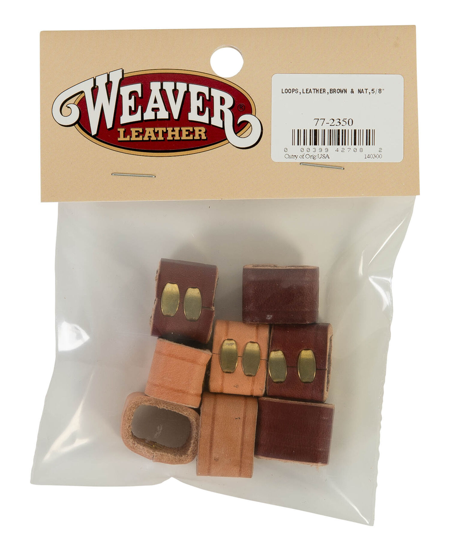 - 5/8" brown and natural leather loops