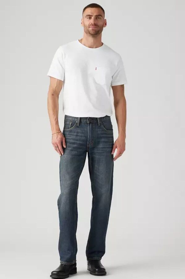- Relaxed, straight-fit jeans