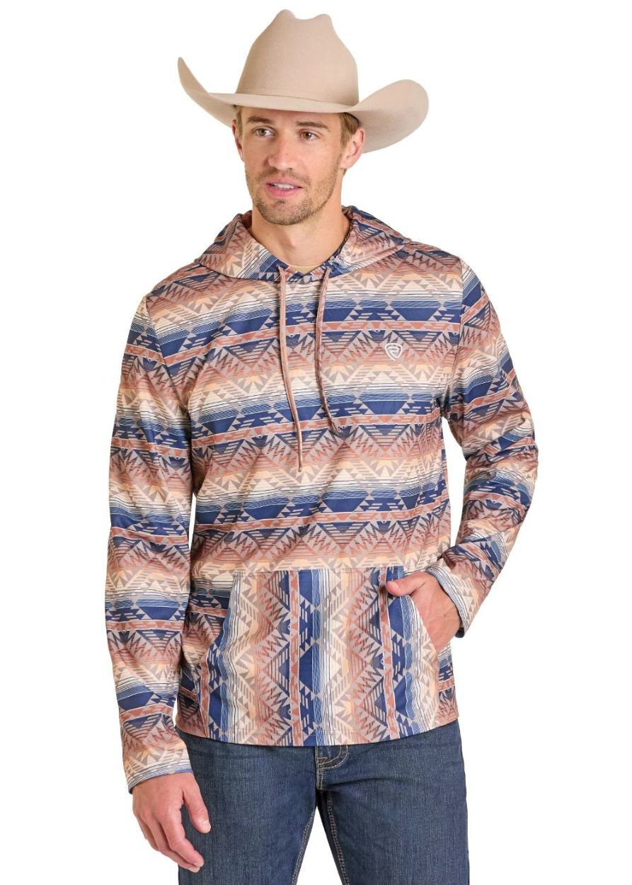 Rock & Roll Denim Aztec Stripe Performance Hoodie