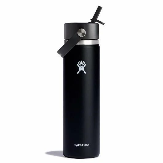 Hydro Flask Wide Mouth with Flex Straw Cap Black Water Bottle, 24-Oz