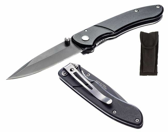 SE Aluminum Pocket Knife With Pouch - Black, 3.75 in