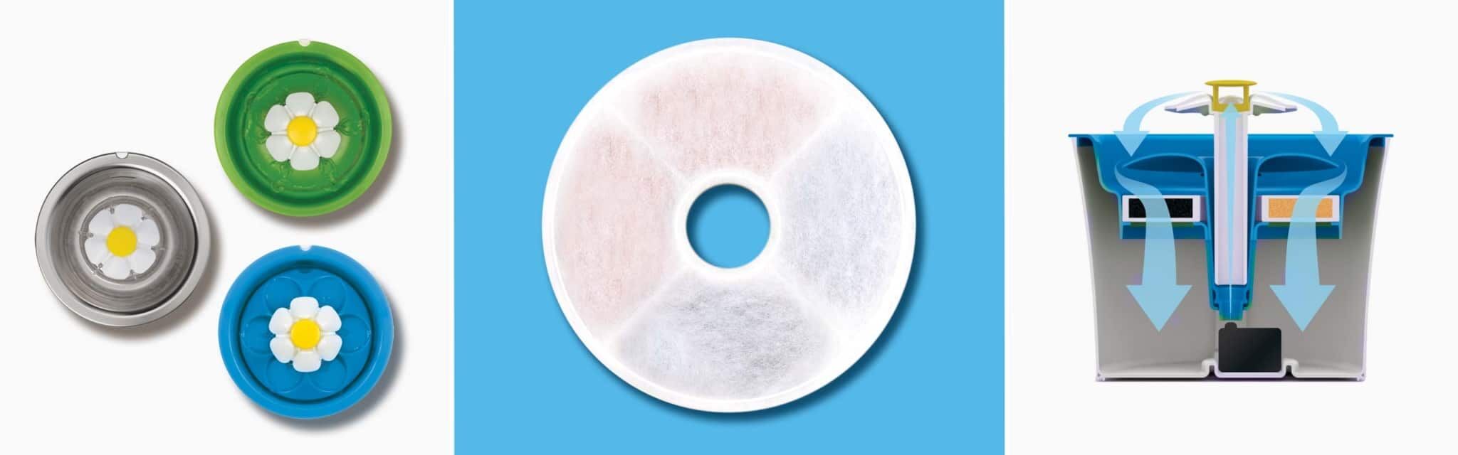 - The filter’s outer layer, made of cotton mesh, catches stray hairs and other debris.