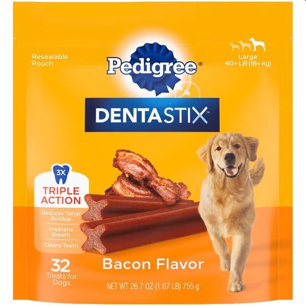 - PEDIGREE DENTASTIX Triple Action acts as a dog breath freshener that works to clean teeth and freshen breath, and has a clinically proven texture that reduces plaque and tartar buildup