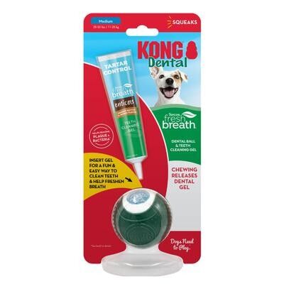 - Cleans as They Chew - Trade the toothbrush for their favorite toy! KONG dental ball releases powerful teeth cleaning gel into your dog's mouth with every chew. This easy, no brushing solution will make your dog love their dental care routine.