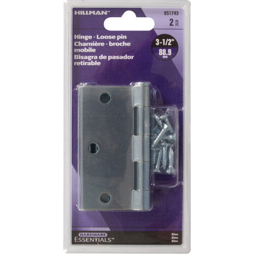 Hillman Hardware Essentials General Purpose Zinc Hinge With Fixed Pin, 3-1/2 In, 2-Pk