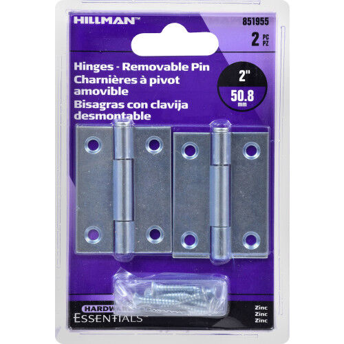 Hillman Hardware Essentials Light Narrow Door Hinge With Removable Pin Zinc, 2-In, 2-Pk