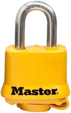- Laminated steel body with yellow weatherproof cover, protects lock from extreme elements