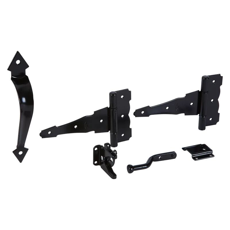 - Kit includes:1 - Gate latch, 2 - T-hinges, 1 - Pull, and associated mounting hardware.