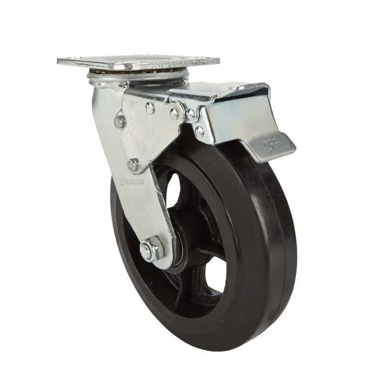 Precision Casters + Wheels Swivel Plate Rubber Caster With Brake, 6-In
