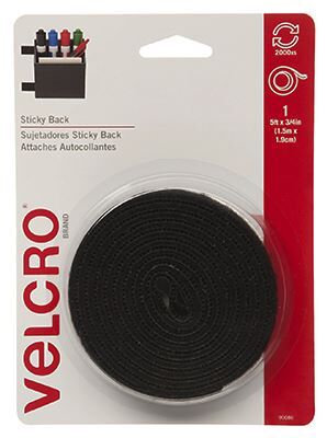 Velcro Black Hook And Loop Tape, 3/4-In X 5-Ft