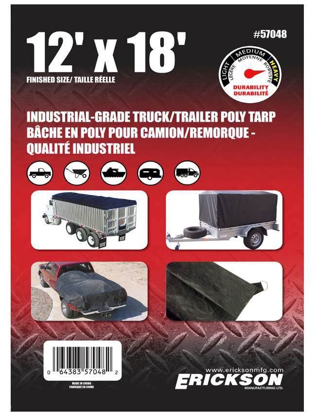 Erickson Industrial Grade Truck/Trailer Tarps - Black, 12 ft X 18 ft