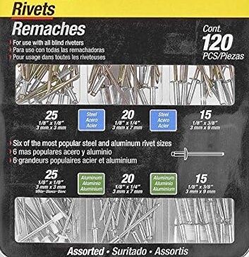 • Aluminum Rivets: (25) 1/8-In x 1/8-In, (20) 1/8-In x 1/4-In, (15) 1/8-In x 3/8-In
