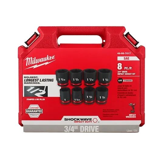 Milwaukee SHOCKWAVE Impact Duty 3/4-In Drive SAE Standard 6 Point Socket Set, 8-Pc