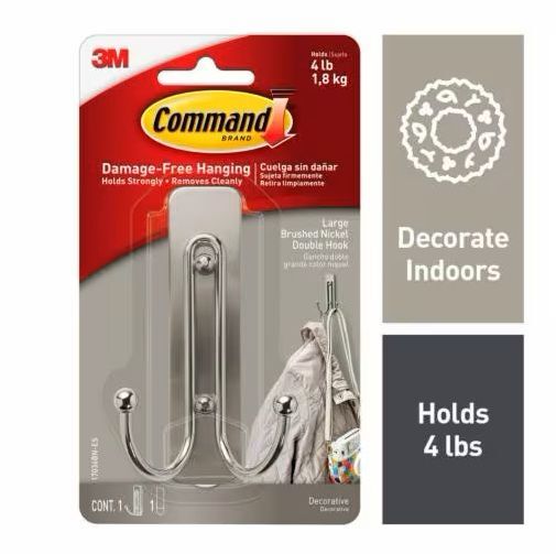 - STRONG AND VERSATILE- Command Decorative Hooks hold strongly on a variety of indoor surfaces including painted walls, finished wood, glass, tile, metal, and other smooth surfaces