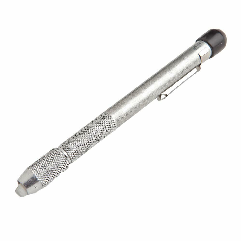 - 1/4" Round Aluminum Soapstone Pencil Holder, constructed with an inner sleeve collet to separate the soapstone for maximum grip and protection