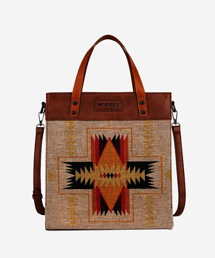 Montana West Women's Wrangler Southwestern Art Print Crossbody Canvas Tote in Aztec