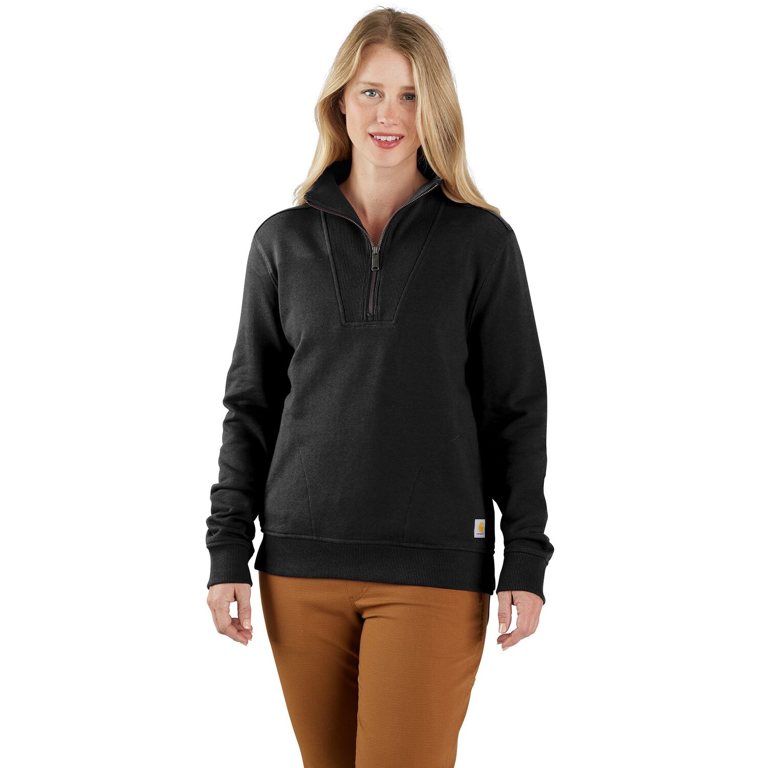 - Rib-knit half-zip collar