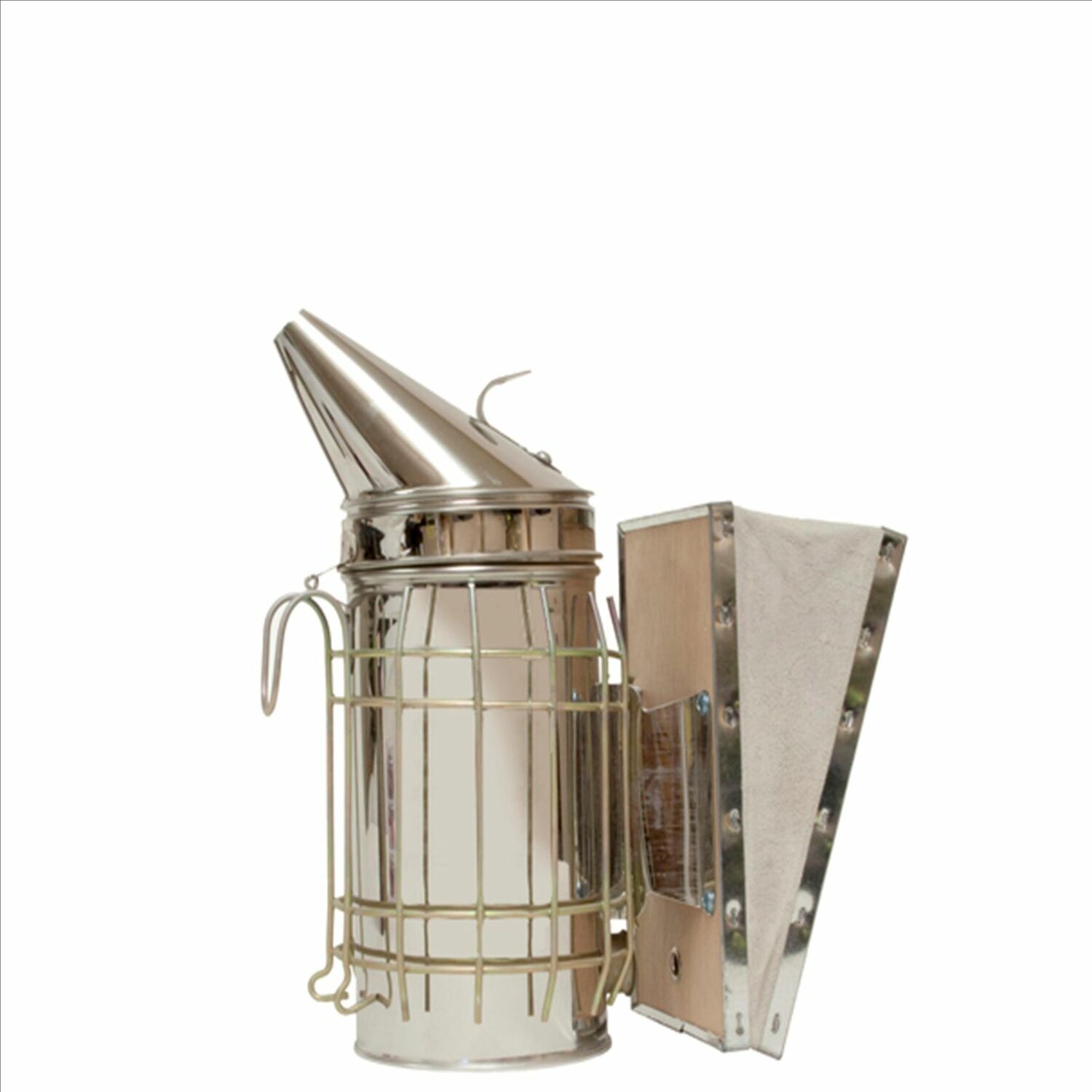 - Beekeeping smoker is crafted from steel with leather bellows